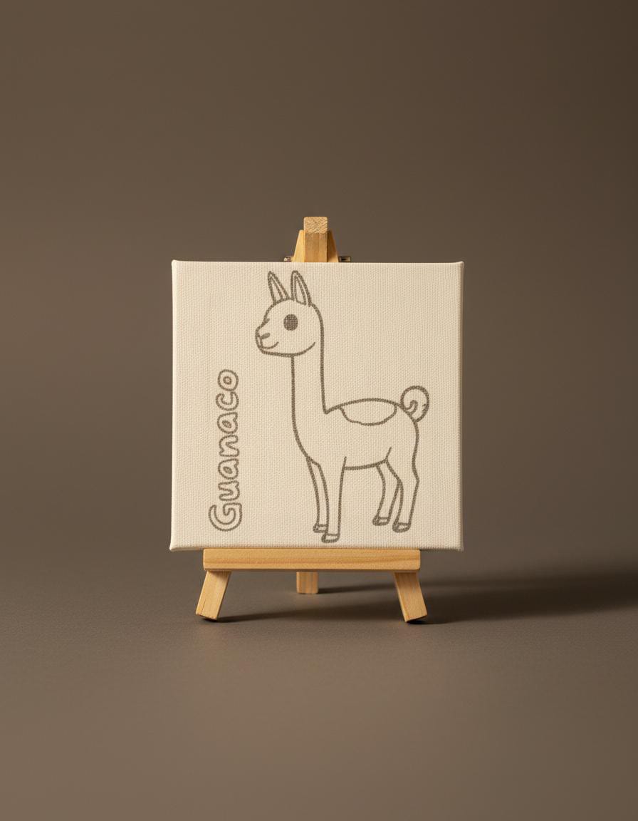 Kit creativo con mini lienzo ilustrado de animales nativos chilenos, acompañado de atril